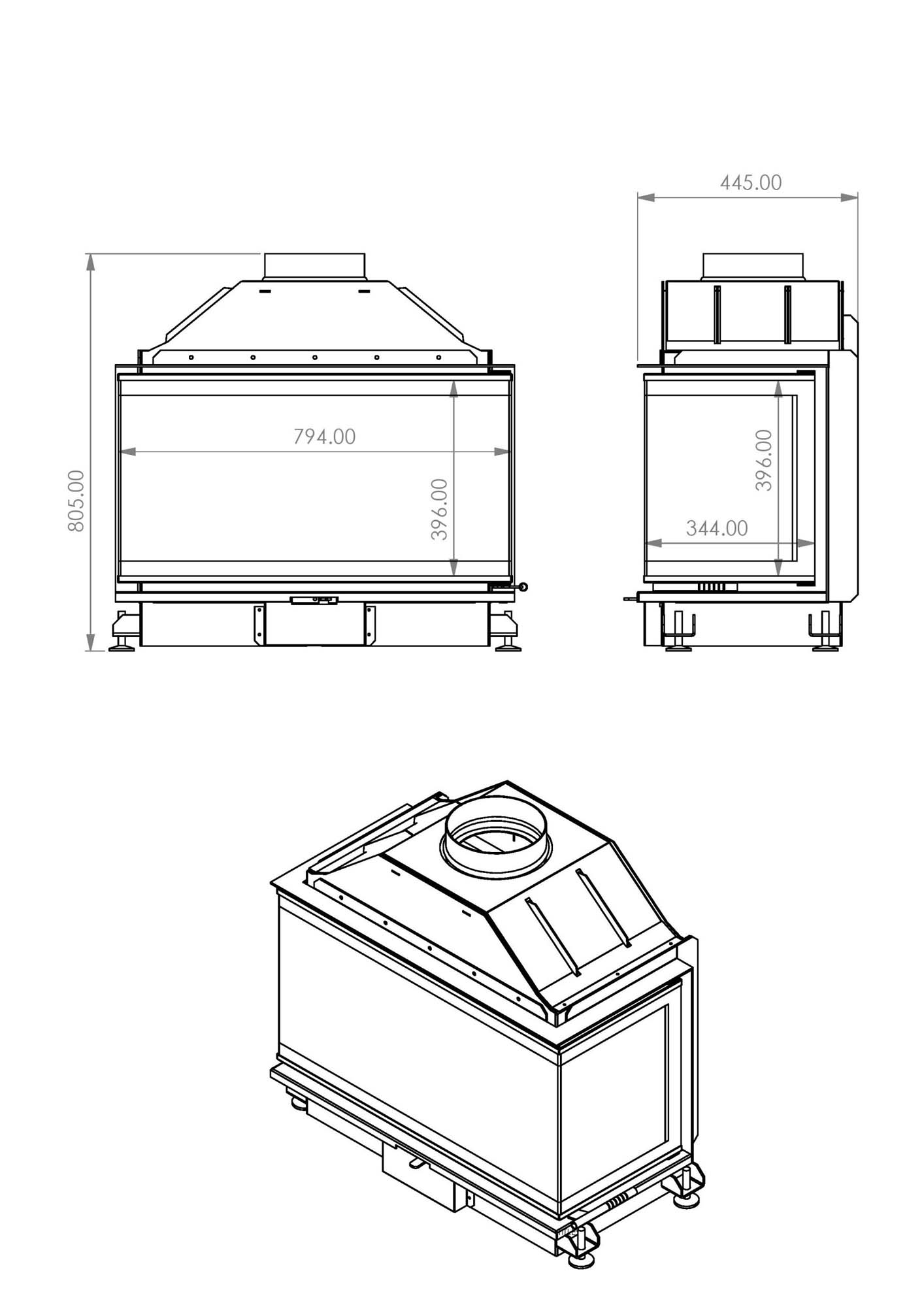 1130 mm, syvyys 810 mm, luukku L940/650 x K500 mm, hormiliitos D250 mm