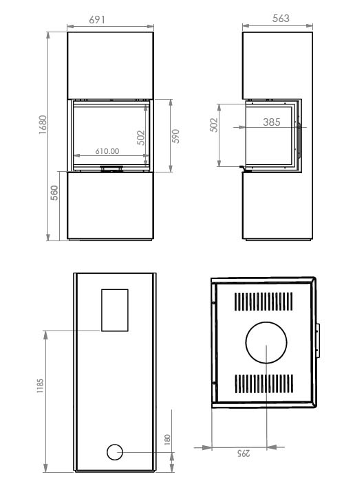 CE merkitty. Turvaetäisyys palavaan lasin kohdalla 800 mm. 70 mm asennus-/viimeistelykarmi mukana.