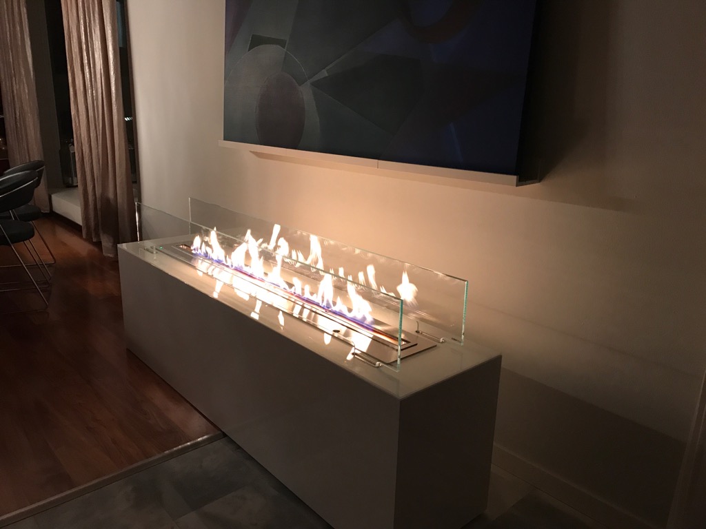 tai sisäänrakennettu. Vaatii palamattoman taustan, kuten biotakat
