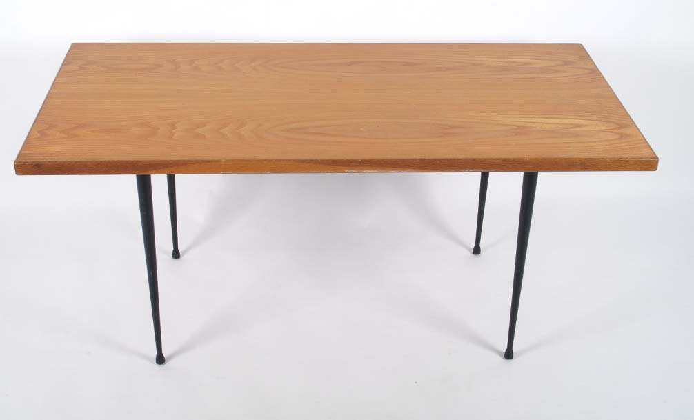 Ilmari Lappalaisen vuonna 1956 Askolle suunnittelema pöytä. Laminoitua lehtipuuta. Mustat metallijalat. Mitat